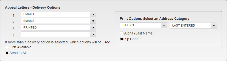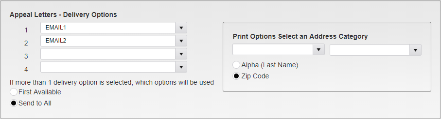 Delivery Order - This is the order in which the letters are processed and emailed or printed. You may use the First Available address or Send to All addresses.