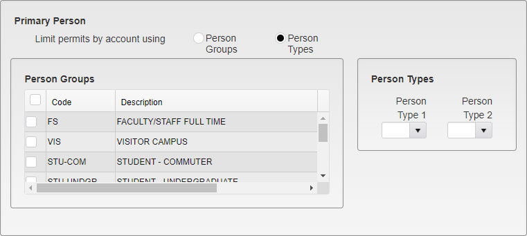 Select if this Permit Renewal Notice will be limited by Person Groups or Person Types.