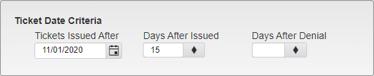 Days After Denial - If a Ticket has been Appealed and Denied, the Statement will only include those Tickets after the entered number of days after the Appeal Denial.