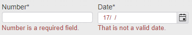 Field entry messages are displayed under the relevant field. These specify errors and missing information to make it simpler to find and fix data entry errors.