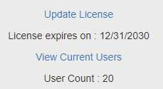 The About page also has a link to Update License for the software. The License is immediately updated for the user who clicked it, but others will need to log out and back in to see the change.