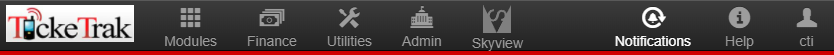 Clicking the TickeTrak logo will take you to Global Search. This is the default screen