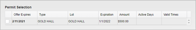 When an Offer has been made to a Person, they will see the Offered Permit listed in Permit Selection when they log into their account. They will then be able to purchase the Permit with the same as they would any other.