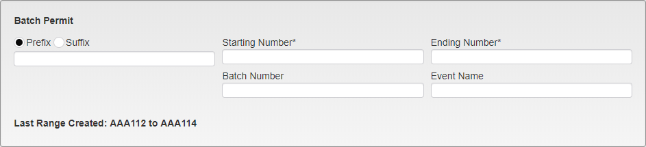 Enter the Prefix or Suffix to be used for the Batch. This will be appended to the beginning or end of the number for all of the Permits generated.