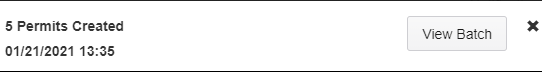Once the Permits have been created, you will receive a notification with the number of Permits created and a link to the Batch information.