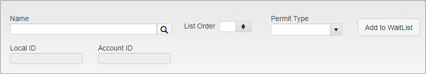 Enter their place on the list using List Order and select the Permit Type they are waiting on, then click the Add to WaitList button. They will be sent a Confirmation Letter, as selected in System Settings, when they are added.