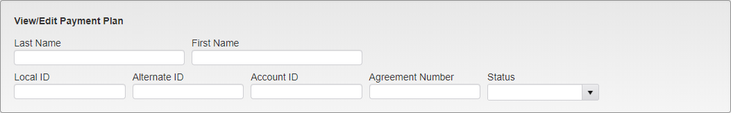 Any combination of fields can be used to search. Click Find in the upper right to search. Select a Payment Plan to view.