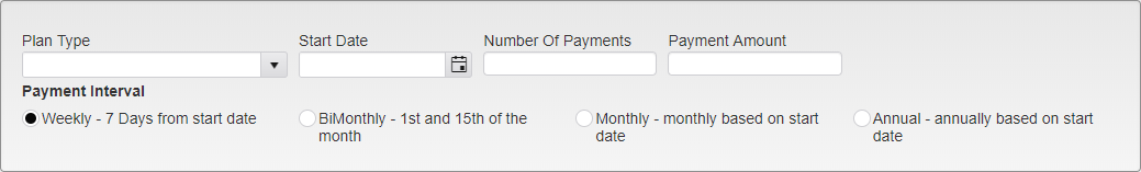 Select the Plan Type for the Payment Plan. Current options are Self Pay or Payroll Deduction.