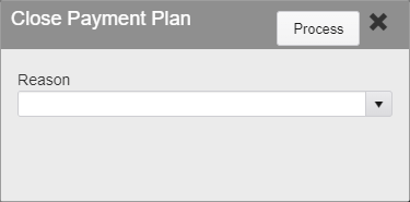 To Close Payment Plan, simply select the Reason and click Process. Reasons are set up in System Settings.
