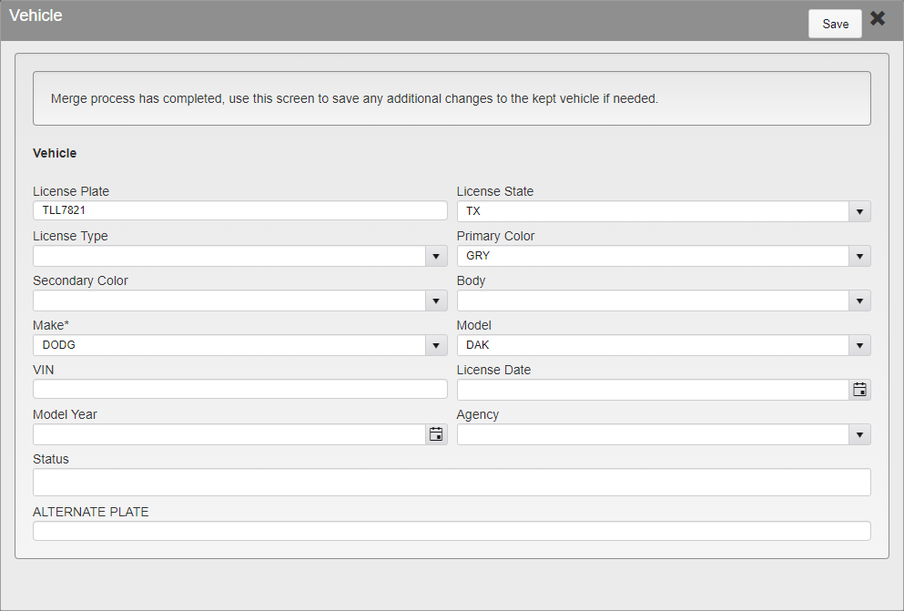 Note: Any Vehicles or Addresses linked to the merged Person will automatically link to the newly merged Person account, unless they were edited during the merge.